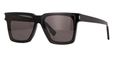 This square Saint Laurent sunglass comes in a shiny black frame with grey with light mirror lenses.