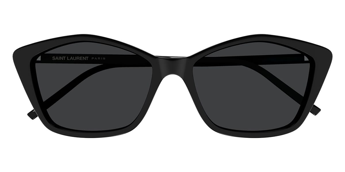 This cat eye Saint Laurent sunglass comes in a black frame with grey lenses.