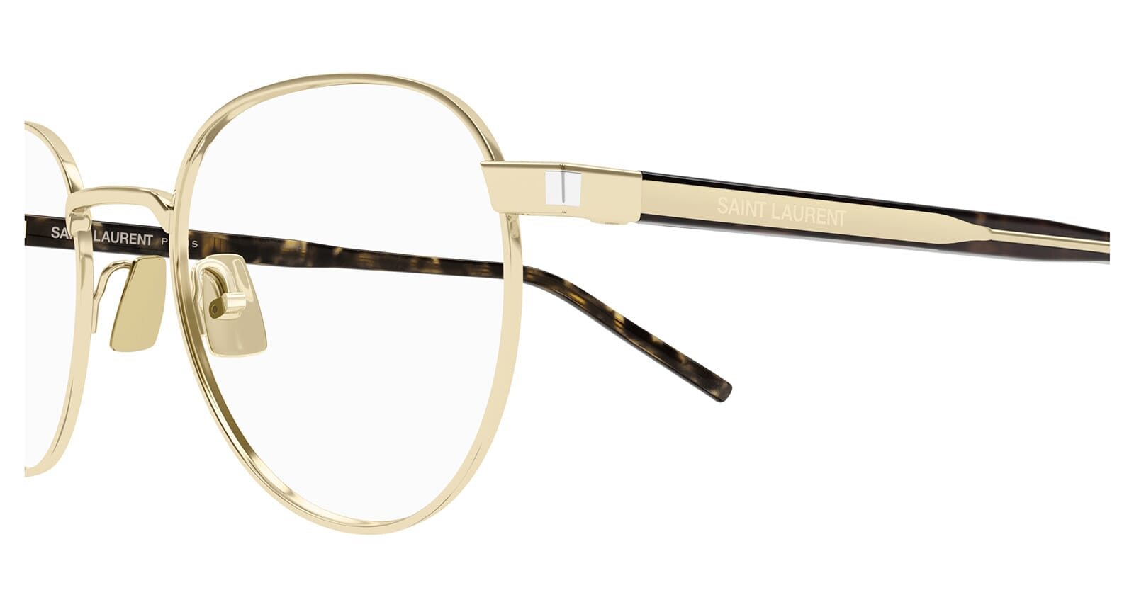 This square Saint Laurent optical comes in a shiny light gold frame.