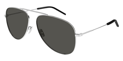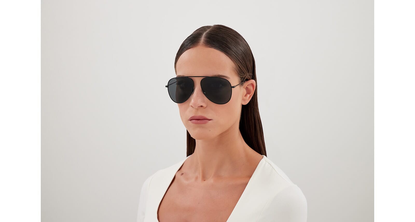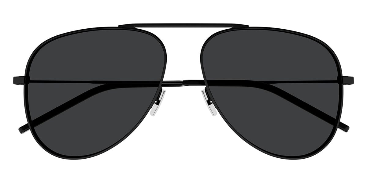 This aviator Saint Laurent sunglass comes in a semimatte black frame with dark grey lenses.