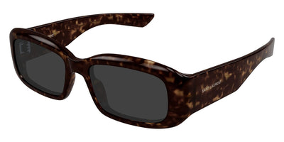 This square Saint Laurent sunglass comes in a havana frame with grey lenses.