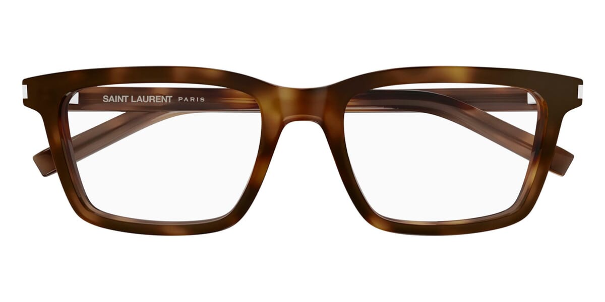 This square Saint Laurent optical comes in a shiny dark havana frame.