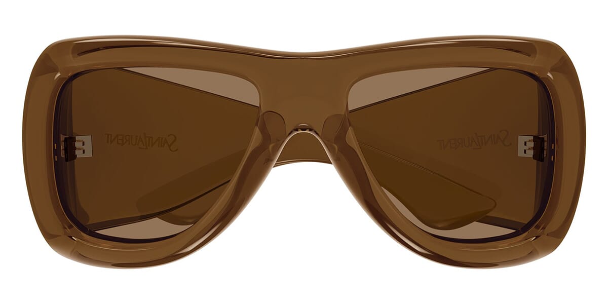 This square Saint Laurent sunglass comes in a dark brown frame with brown lenses.