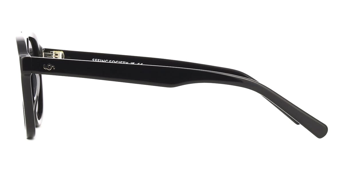 This square Seeing Society sunglass comes in a shiny black frame with grey with light mirror polarised lenses.