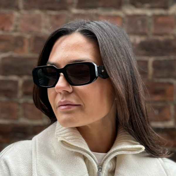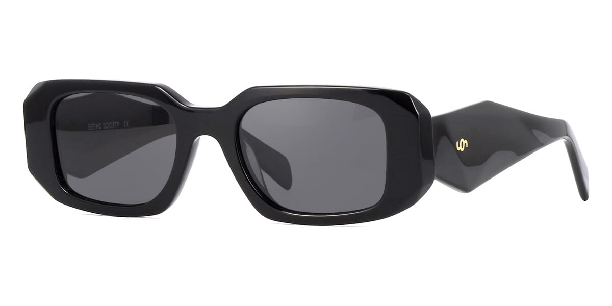 This square Seeing Society sunglass comes in a shiny black frame with grey with light mirror polarised lenses.