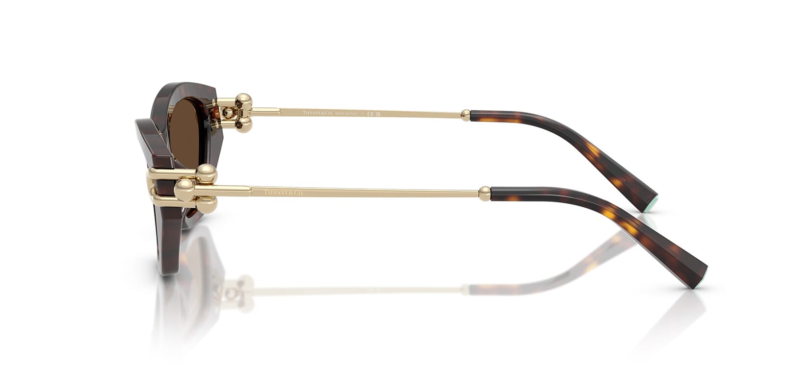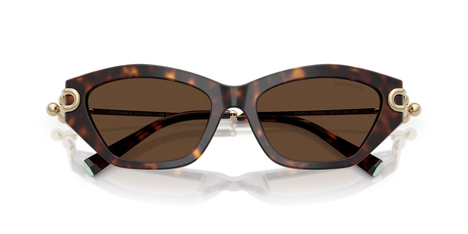 This cat eye Tiffany sunglass comes in a havana frame with light brown lenses.