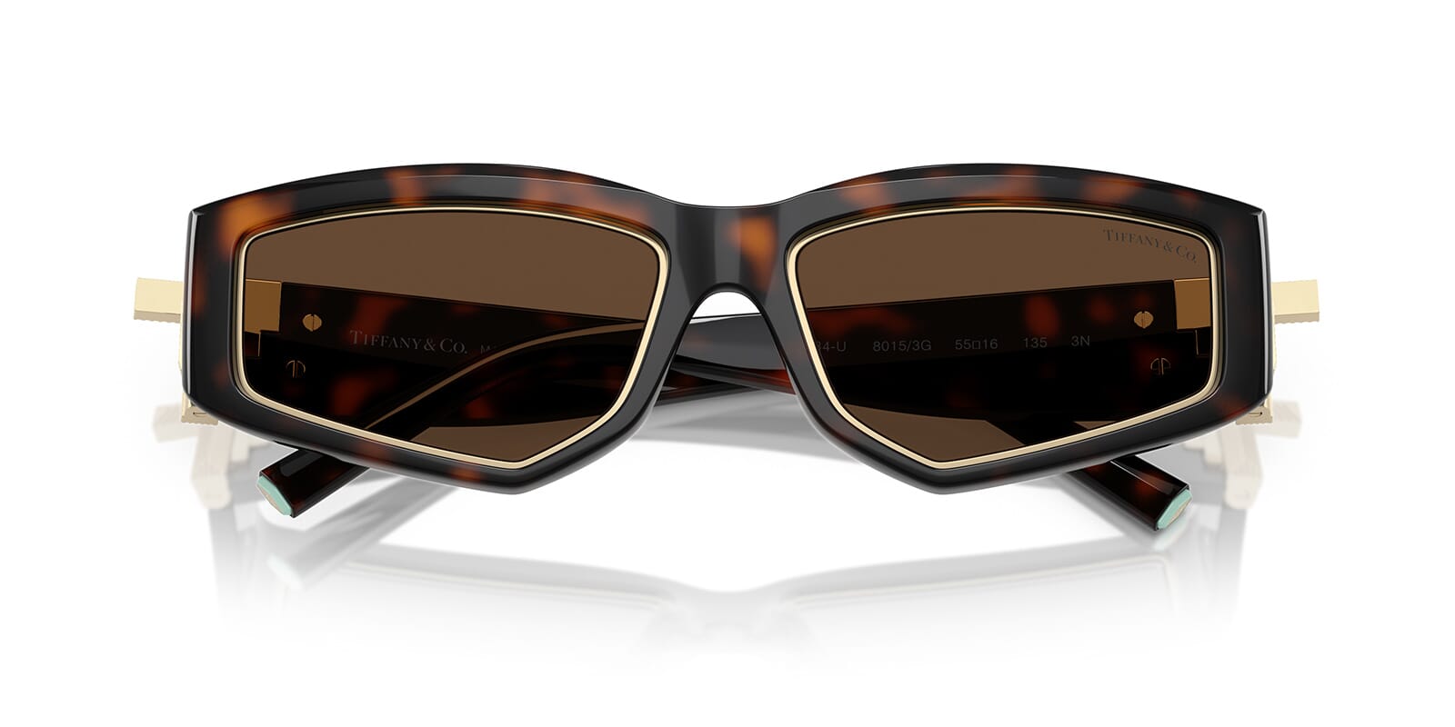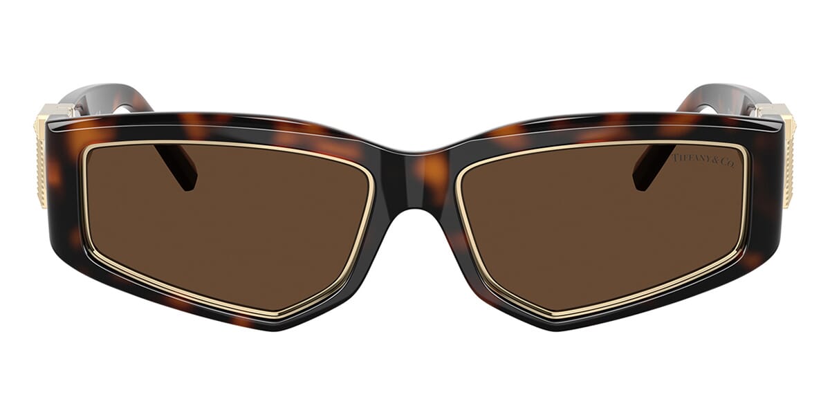 This rectangular Tiffany sunglass comes in a havana frame with light brown lenses.