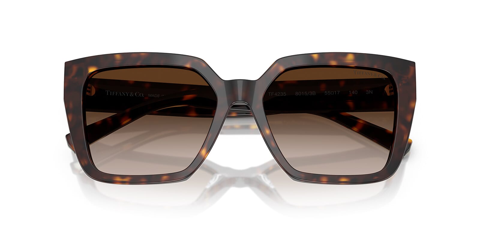 This square Tiffany sunglass comes in a havana frame with brown gradient lenses.