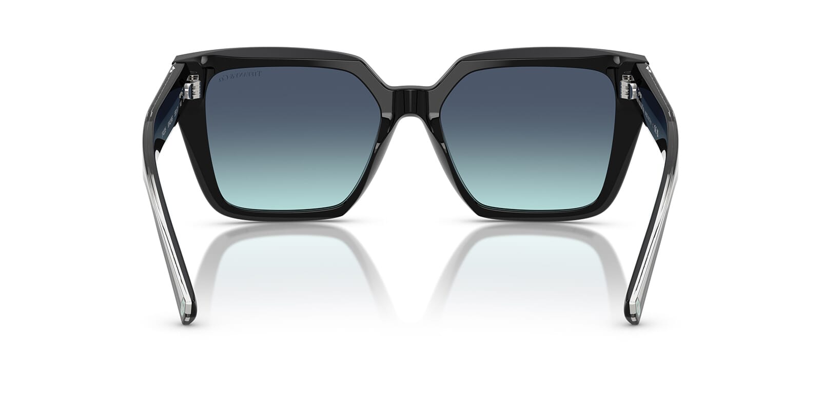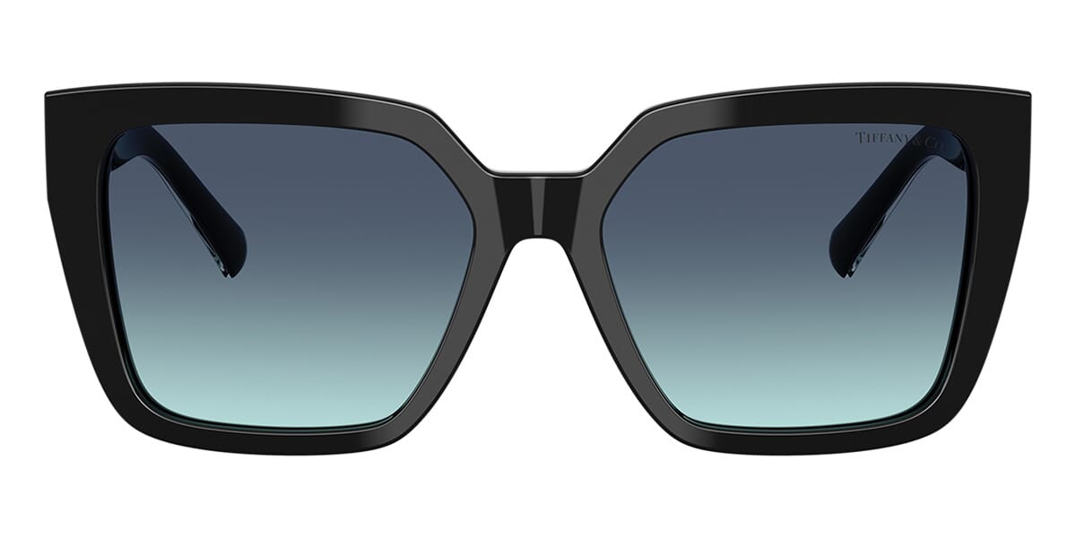 This square Tiffany sunglass comes in a black frame with blue azure gradient lenses.