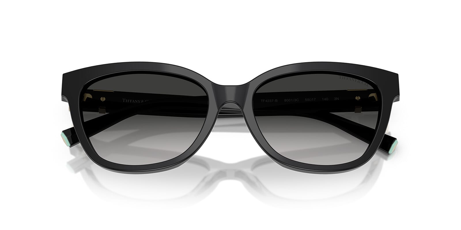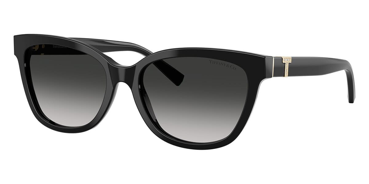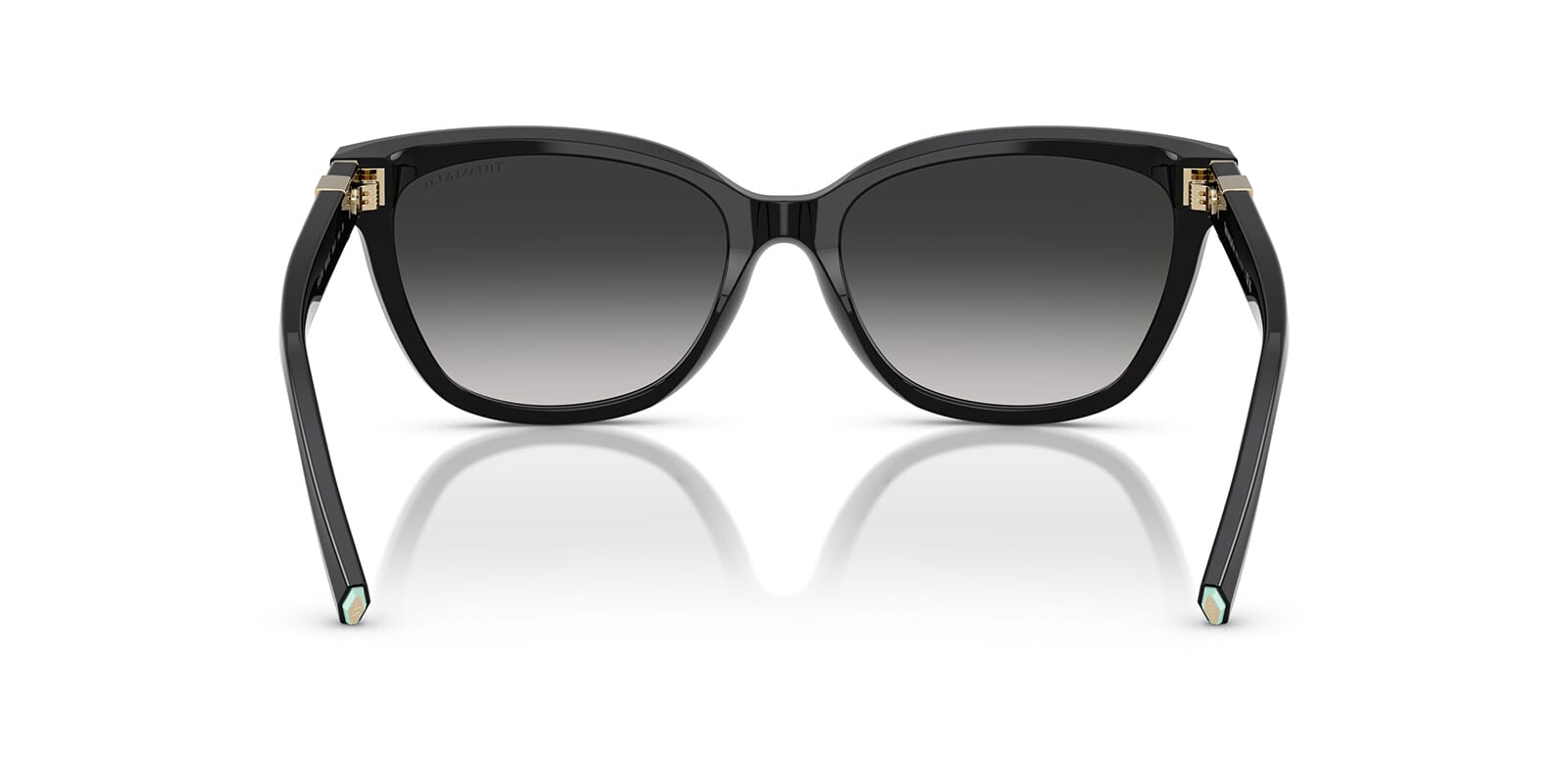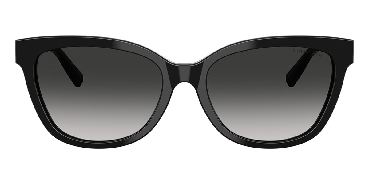This cat eye Tiffany sunglass comes in a black frame with grey gradient lenses.
