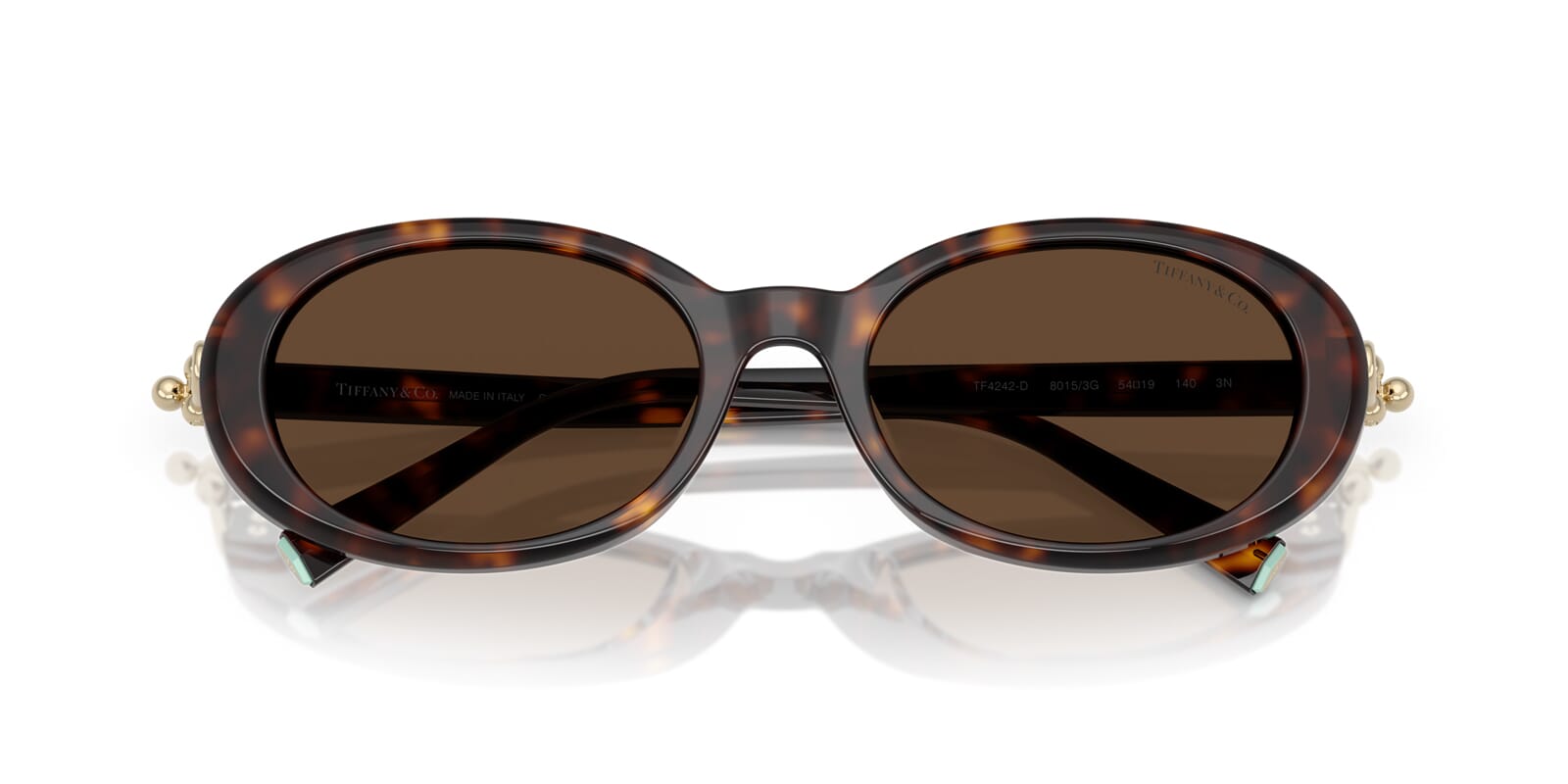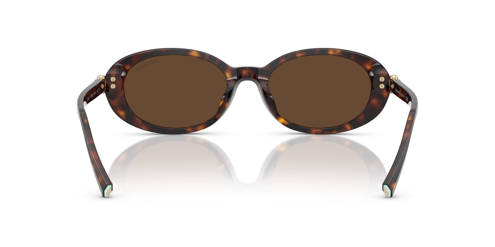 This round Tiffany sunglass comes in a havana frame with light brown lenses.