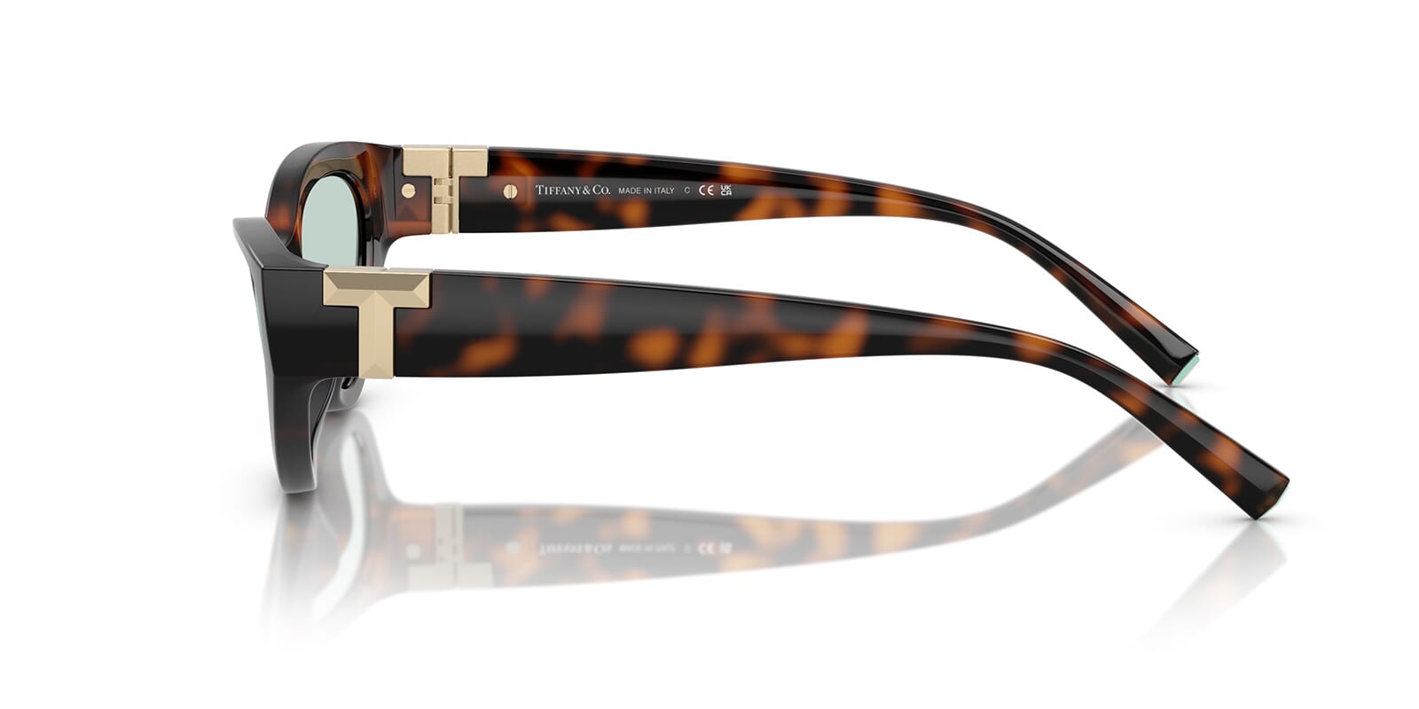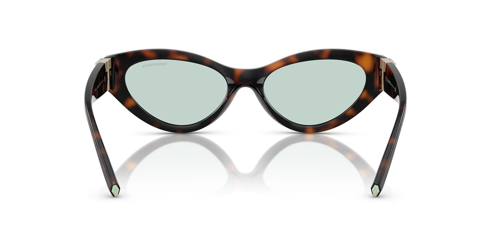 This round Tiffany sunglass comes in a havana frame with light azure lenses.