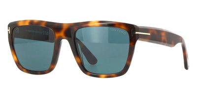 This square Tom Ford sunglass comes in a shiny dark havana frame with brown to blue gradient with light mirror lenses.
