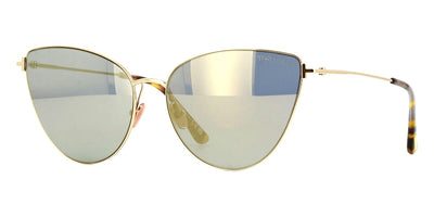 This cat eye Tom Ford sunglass comes in a shiny light gold frame with brown with nude mirror lenses.