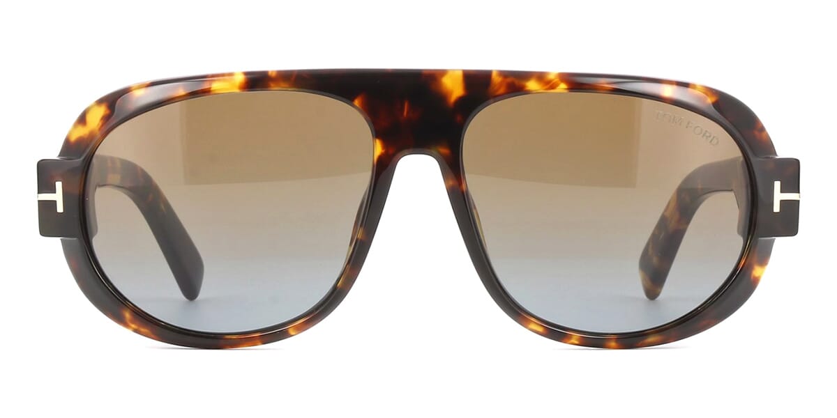 This aviator Tom Ford sunglass comes in a shiny dark havana frame with brown to grey gradient lenses.