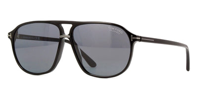 This square Tom Ford sunglass comes in a shiny black frame with grey gradient with light mirror lenses.