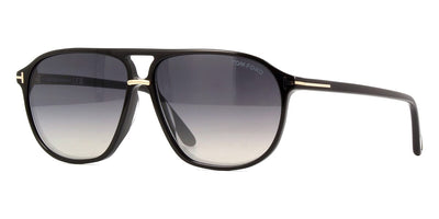 This square Tom Ford sunglass comes in a shiny black frame with grey polarised lenses.