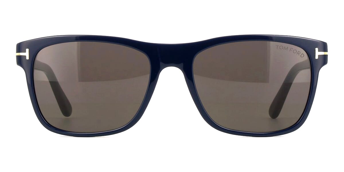This square Tom Ford sunglass comes in a shiny blue frame with grey with light mirror lenses.
