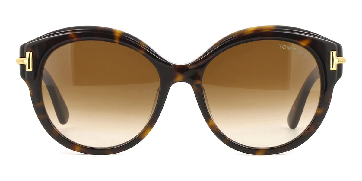 This round Tom Ford sunglass comes in a shiny dark havana frame with brown gradient with light mirror lenses.