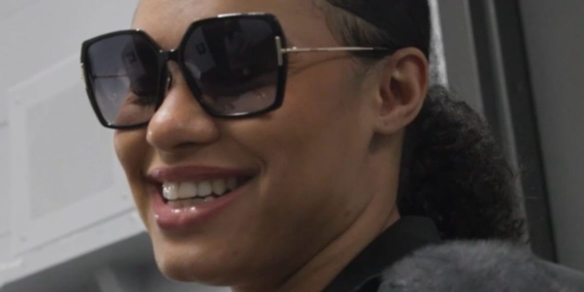 This square Tom Ford sunglass comes in a shiny black and gold frame with grey gradient lenses.