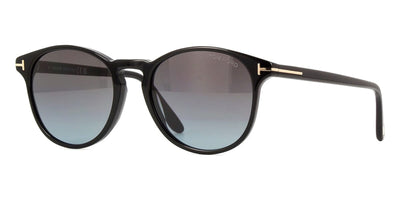 This round Tom Ford sunglass comes in a shiny black frame with grey polarised lenses.
