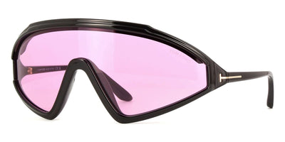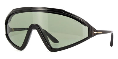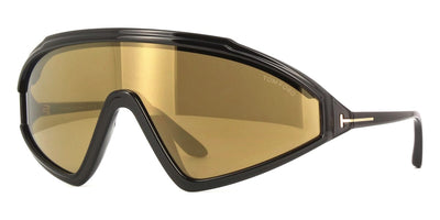 This shield Tom Ford sunglass comes in a shiny black frame with grey with light mirror lenses.
