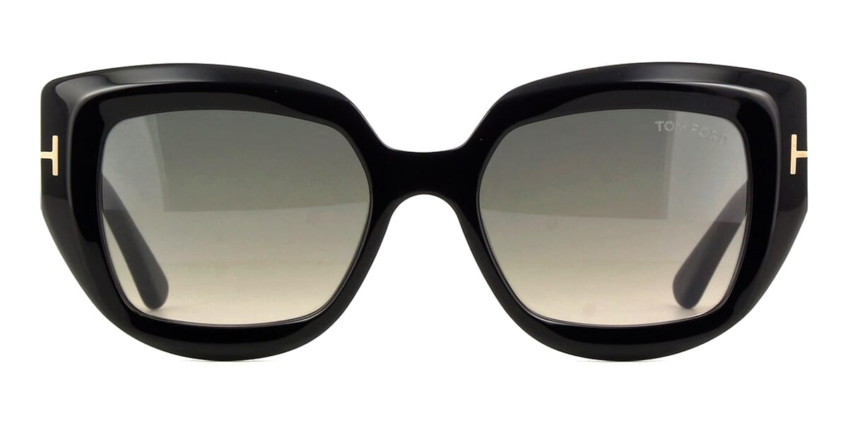 This square Tom Ford sunglass comes in a shiny black frame with grey gradient with light mirror lenses.