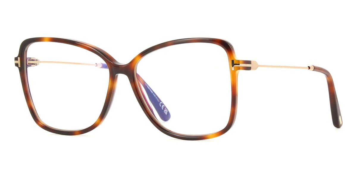 This butterfly Tom Ford optical comes in a shiny dark havana frame.