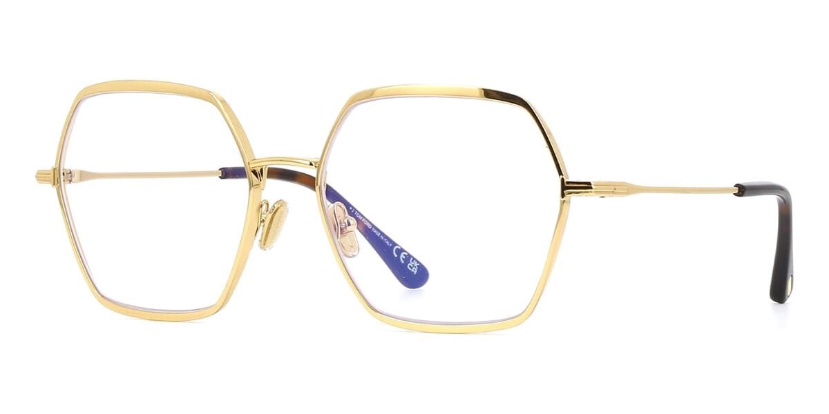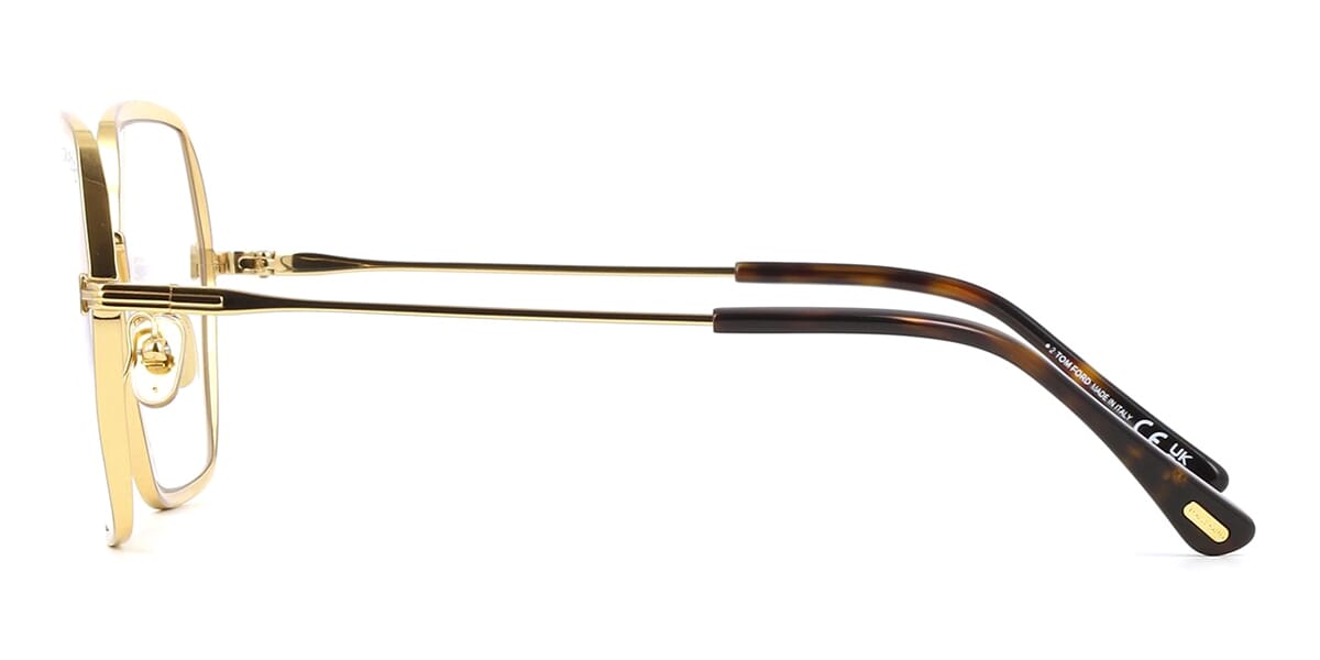 This square Tom Ford optical comes in a shiny deep gold frame.