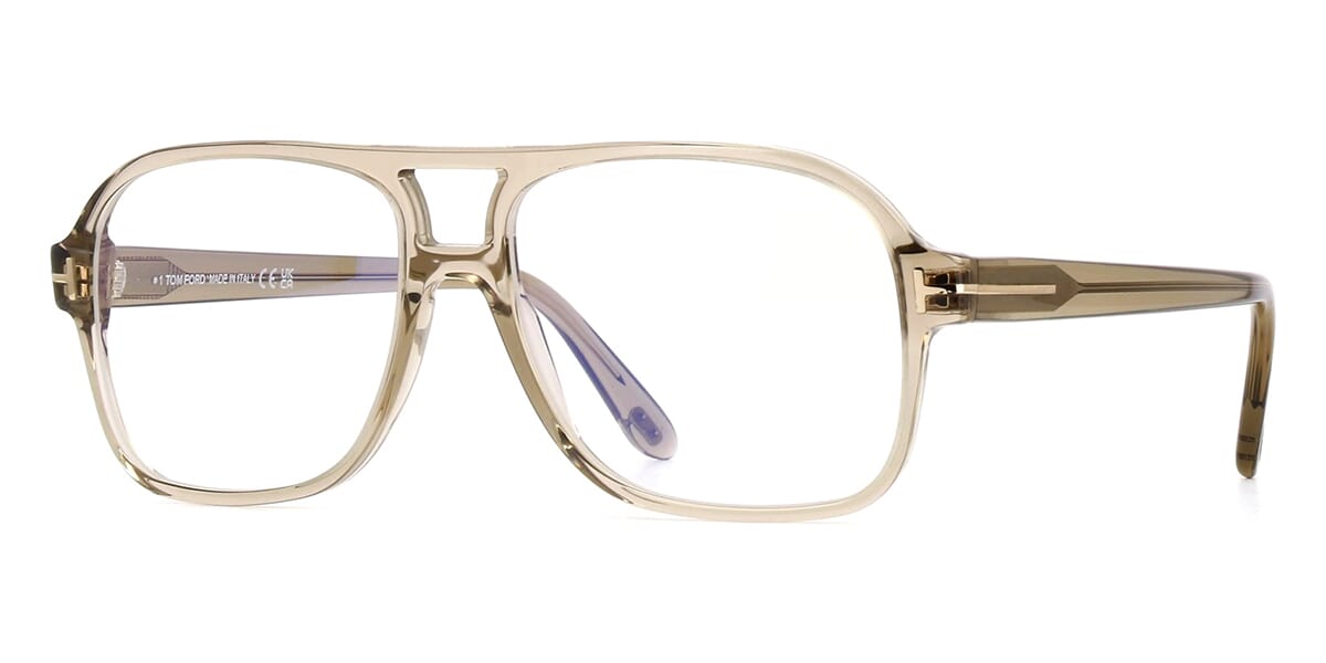 This aviator Tom Ford optical comes in a mastic brown crystal frame.