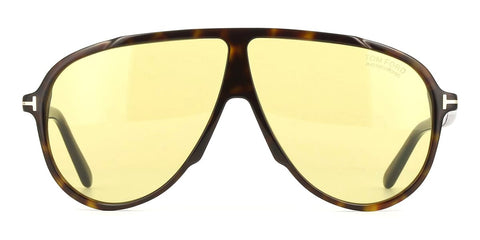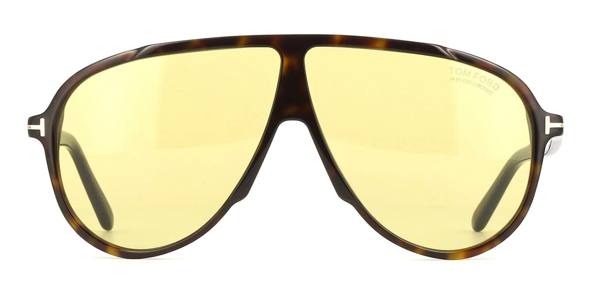 This aviator Tom Ford sunglass comes in a shiny dark havana frame with brown photochromic lenses.