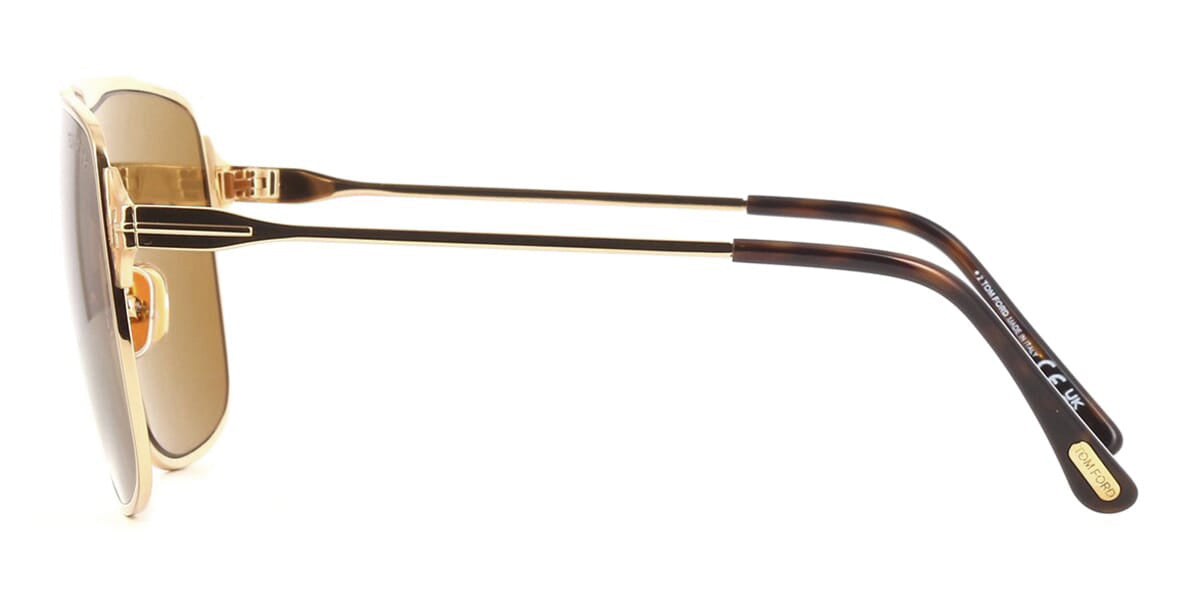 This square Tom Ford sunglass comes in a shiny gold frame with brown with light mirror lenses.