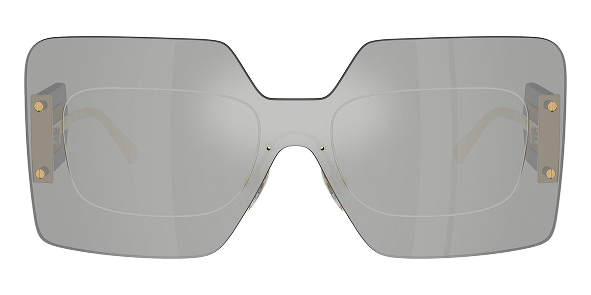 This shield Versace sunglass comes in a transparent grey with silver mirror frame with grey with silver mirror lenses.