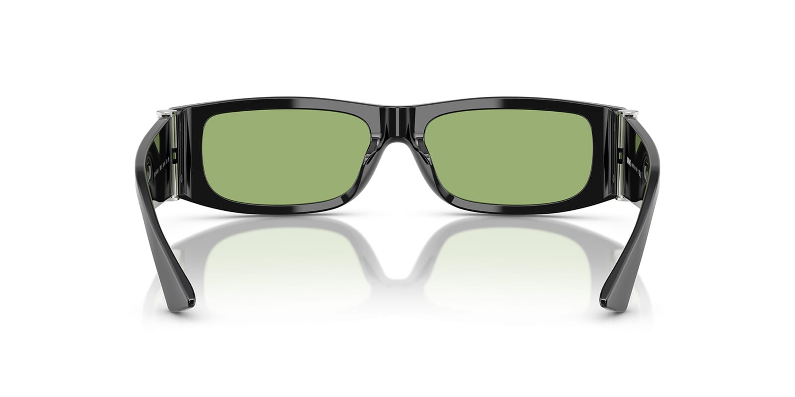 This rectangular Versace sunglass comes in a black frame with green lenses.