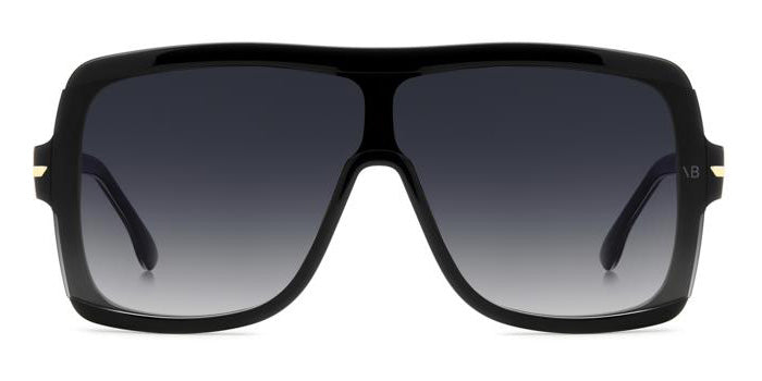 This shield Victoria Beckham sunglass comes in a black crystal frame with blue gradient lenses.