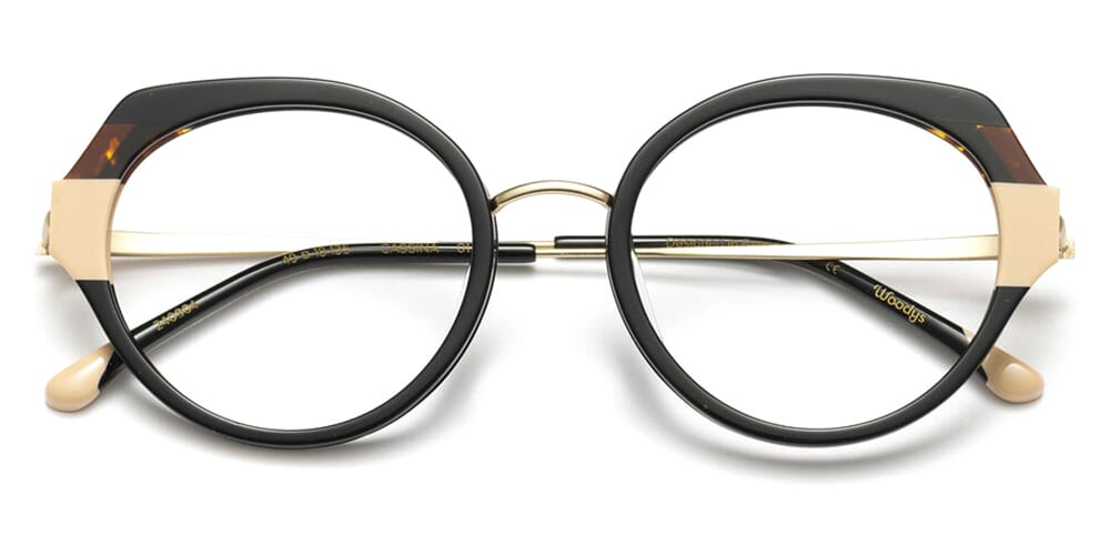 This square Woodys optical comes in a dark brown tortoise with gold frame.