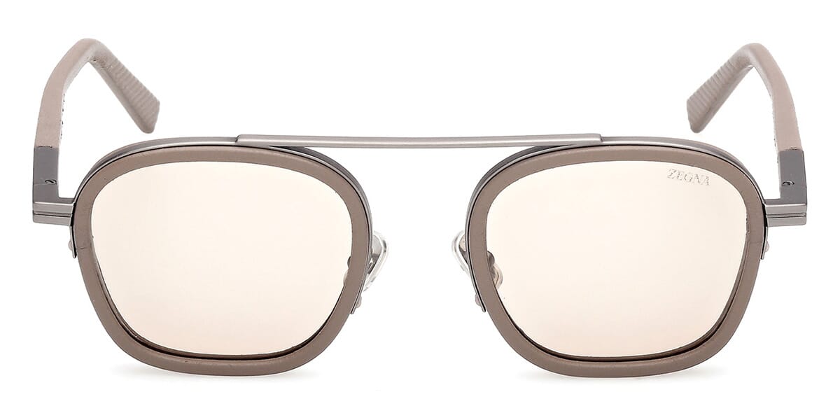 This square Zegna sunglass comes in a matte beige brown frame with light brown lenses.